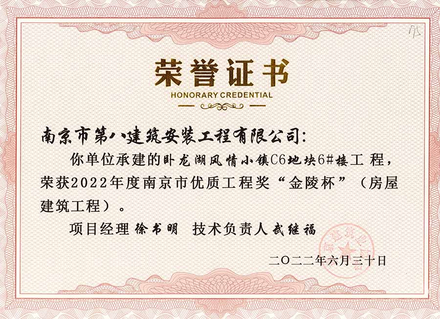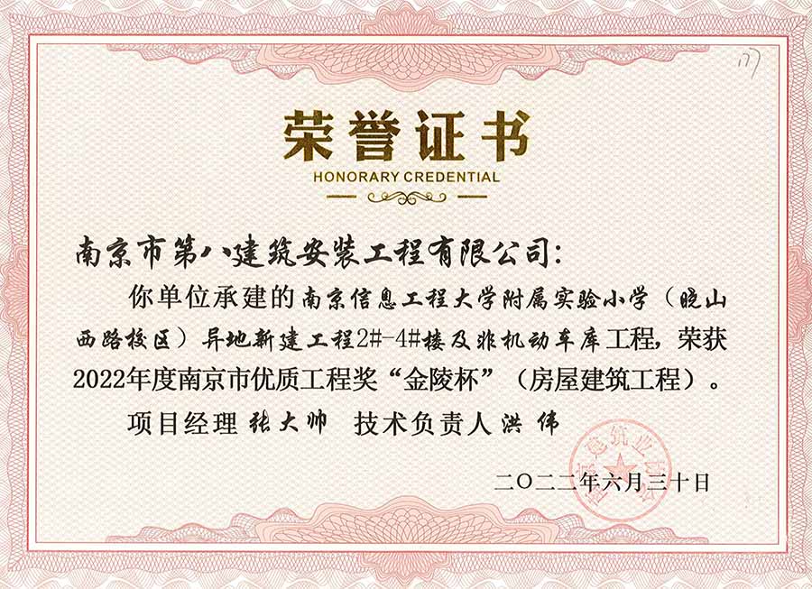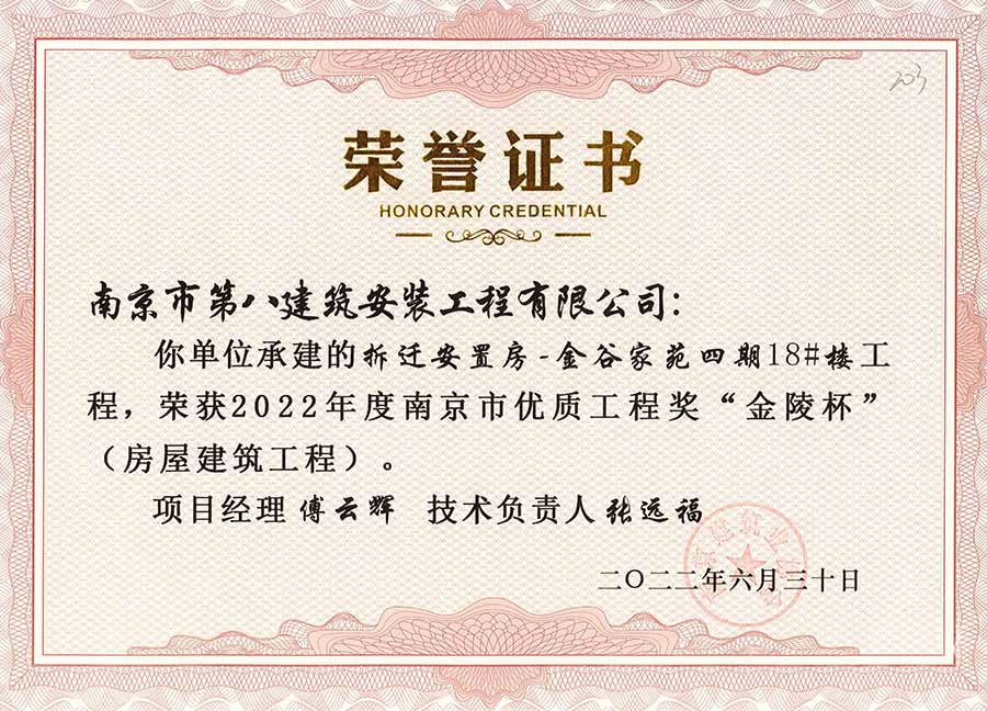 6月30日,南京建協(xié)下發(fā)了(2022)24號(hào)文件《關(guān)于公布2022年南京市優(yōu)質(zhì)工程獎(jiǎng)“金陵杯”(房屋建筑類、軌道交通工程)項(xiàng)目名單的通知》,決定授予“幸莊人才公寓”等208個(gè)項(xiàng)目為2022年南京市優(yōu)質(zhì)工程獎(jiǎng)“金陵杯”,我公司承建的13個(gè)項(xiàng)目榮獲榮譽(yù)。